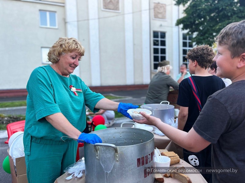В Гомеле на площади в Костюковке угощают солдатской кашей