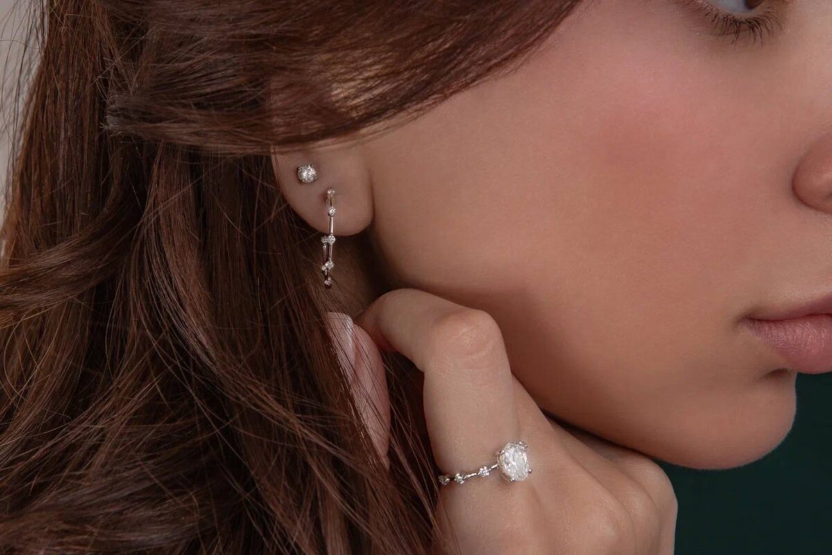 Серьги-конго с выращенными бриллиантами 0,294 ct