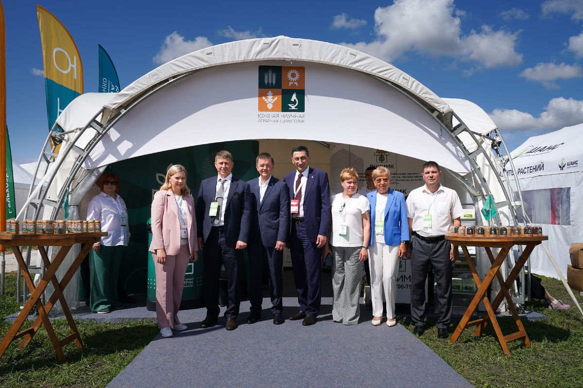 Сегодня, 3 июля, в Волгоградской области стартовало главное аграрное событие года – «Всероссийский день поля–2025». В деловой программе выставки участвуют врио директора ВНИИМК, кандидат с.х. наук Константин Георгиевич Баблоев, заместитель директора по научной работе, кандидат биол. наук Марина Валериевна Трунова, научный руководитель ВНИИМК и председатель ЮНАТ, академик РАН Вячеслав Михайлович Лукомец, а также заведующий агротехнологическим отделом, кандидат с.х. наук Александр Сергеевич Бушнев.