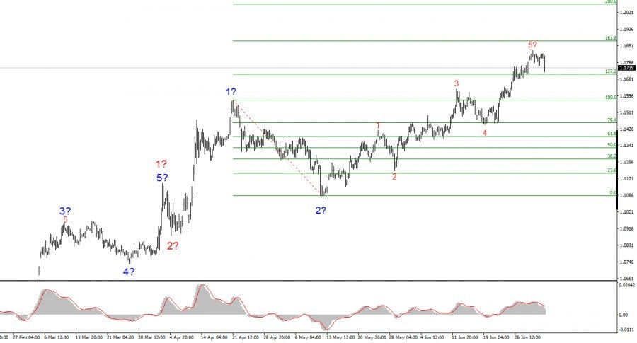 https://basechop.ru/wordpress/?p=49276 Волновая разметка 4-часового графика для инструмента EUR/USD продолжает указывать на построение повышательного участка тренда. Торговая война, начатая Дональдом Трампом, была призвана увеличить поступления в бюджет и понизить дефицит торгового баланса. Однако этих целей добиться пока не удается, торговые сделки подписываются «со скрипом», а «Один большой закон» Трампа увеличит государственный долг США в ближайшие годы на 3 трлн долларов. Спрос на доллар начал стремительно падать еще в начале года, и теперь весь участок тренда, берущий свое начало 13 января, принял импульсный восходящий и незавершенный вид. В данное время предположительно продолжается построение волны 3, которая может принять гораздо более протяженный вид, чем сейчас. Однако внутренняя структура приобрела пятиволновой вид и, следовательно, может быть завершена. Если текущая волновая разметка верна, то повышение котировок будет продолжаться в ближайшие месяцы, но в краткосрочной…