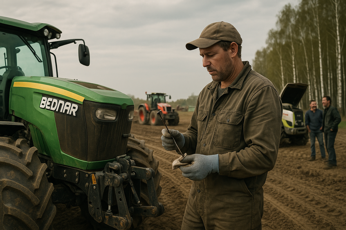 С утра всё шло спокойно, а потом началось. Нам предстояло подготовить поле для посевов, благо погода пока шепчет, хотя сюрпризов от неё я всегда жду. Соседи на другом поле уже вовсю гоняют технику, а у меня под капотом классика жанра — Беднар. Что поделать, я с ним столько прошёл огня и воды, что он уже как родной. Надёжный друг, но требует внимания. Обслуживаю аккуратно: фильтры продуваю, систему смазки обновляю. Спасибо подписчикам за новые перчатки: мелочь, а настроение поднимает.