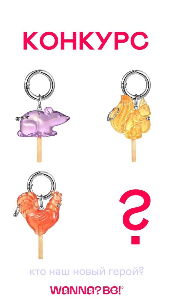 Новый конкурс на брелок-леденец! Пересылайте пост друзьям, пусть узнают, кто Белочка, а кто — Крыска в вашей компании. И отмечайте в комментариях: в каком из леденцов вы узнали своего друга. А еще — мы готовим нового героя коллекции. Это строго секретно, но даем шанс блеснуть дедукцией. Угадывайте в комментариях, кто это будет. Победитель получит любой брелок из коллекции! Условия: — Отметить никнейм друга через @ и подписать, в ком вы его узнали (Петушок, Крыска, Белочка) — Предположить, какого героя мы выпускаем следующим. Победитель — первый угадавший и выполнивший условия. Всем большой удачи! 🙂