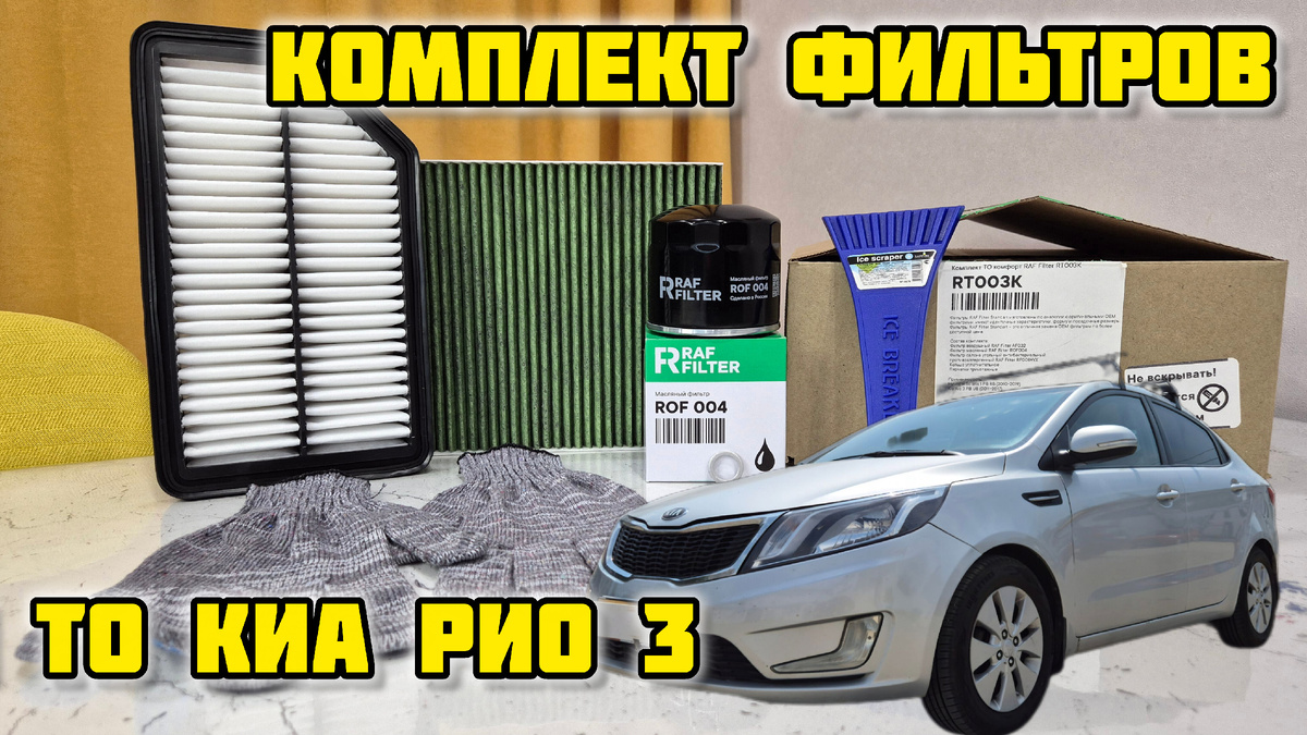 Здравствуй, дорогой читатель! 7 000 км. назад мы заменили моторное масло на Киа Рио 3 и настало время очередного ТО. Для замены мы приобрели комплект от RAFFILTER RT003T До этого пользовались подобными комплектами, для нас пришлось удобно, когда в одной коробке есть все необходимое 👍 И так состав комплекта: 🔷️Фильтр воздушный RAF Fiter AF032 🔷️Фильтр масляный RAF Fiter ROF004 🔷️Фильтр салона угольный антибактериальный противоаллергенный RAF Fiter RFOO1HYX 🔷️Кольцо уплотнительное 🔷️Перчатки трикотажные Бонус для зимнего времени скребок Полный комплект: Применяемость: ▫️ Hyurdai Solaris 1 РВ RE (2010-2019) ▫️ Кіа Rio3 РВ UB (2011-2017) Проблем с установкой подобных комплектов никогда не возникало. Как встанет этот, проверим уже совсем скоро ✔️ В комментариях пишите удобный ли для вас вариант покупки комплектом !? ✍️
