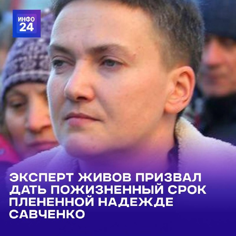 🔥⚡️❤️ Оказавшаяся второй раз в плену ВС РФ украинская летчица Надежда Савченко должна получить пожизненный срок за военные преступления. Об этом Инфо24 заявил военный эксперт Алексей Живов. Ранее украинский журналист Всеволод Филимоненко сообщил, что летчица и экс-депутат Верховной рады Надежда Савченко якобы вновь попала в российский плен. По его словам, Савченко попала в засаду во время ночной вылазки у села Синьковка в Харьковской области. «Российское государство зачастую чрезмерно гуманно к своим врагам, поэтому хотелось бы, чтобы ее ждало пожизненное заключение в колонии строгого режима за военные преступления, которые она совершила. Если эта информация соответствует действительности, то, скорее всего, ей дадут какой-то срок и впоследствии обменяют», — отметил Живов. По словам эксперта, несмотря на то что Надежду Савченко серьезно недолюбливают в военных и политических кругах Украины, простые украинцы считают ее героиней. При этом он выразил уверенность, что пребывание в росси