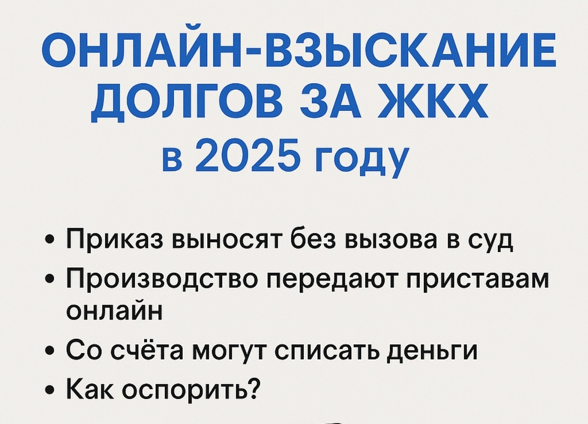 В 2025 году процедура взыскания долгов за коммунальные услуги максимально упростилась. Управляющие компании и ресурсоснабжающие организации все чаще прибегают к онлайн-судебному порядку — приказному производству, которое проводится без личного вызова должника в суд. 📌 В этой статье разберём: Судебный приказ — это упрощённое судебное решение, которое выносится без заседания и без вызова сторон. Достаточно заявления от ЖКХ или ТСЖ и подтверждения долга. В 2025 году такие дела полностью переведены в онлайн — достаточно одной загрузки документов через ГАС "Правосудие", и через несколько дней должник уже может попасть в реестр судебных приказов. Проверить наличие судебного приказа можно: 🔹 Сайт ГАС "Правосудие" 🔹 Банк данных ФССП 🔹 Госуслуги → Судебные и исполнительные производства 🔹 В приложениях банков — при аресте счета приходит уведомление. С момента вынесения судебного приказа у вас есть 10 дней, чтобы его отменить. 📍 Алгоритм действий: 💡 Если срок 10 дней прошёл — всё ра