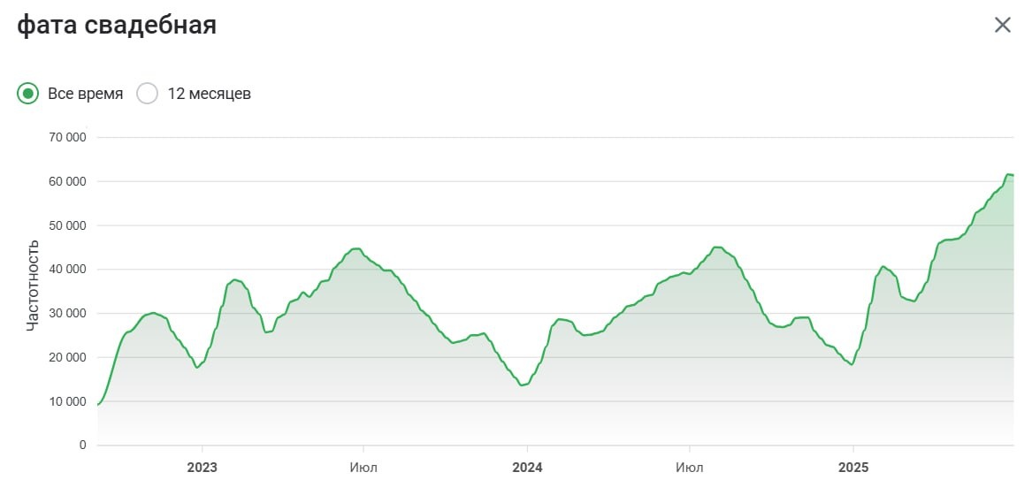 ♾Товар для летнего бизнеса 📈 Горячий сезон уже в разгаре! С марта по октябрь спрос на свадебные аксессуары взлетает до небес, и ФАТА — один из самых востребованных товаров. 📊 Впечатляющие цифры: 💵 Ежемесячный оборот — 26 млн рублей 🔍 60 000 поисковых запросов в месяц 📈 Всего 222 продавца с реальными продажами 💡 Почему это выгодно: 📋 Минимальные вложения в документацию (без маркировки «Честный знак») 🎯 Низкая конкуренция — больше половины выдачи без рекламы 💸 Доступные рекламные ставки 🚚 Товар компактный и лёгкий — логистика Wildberries не станет проблемой ✨ Идеальный момент для расширения вашего ассортимента! 📅 Особенно актуально для тех, кто ищет сезонный товар с высоким спросом. 🎯 Не упустите возможность войти в нишу в следующем году! 🛒 Готовим сани заранее