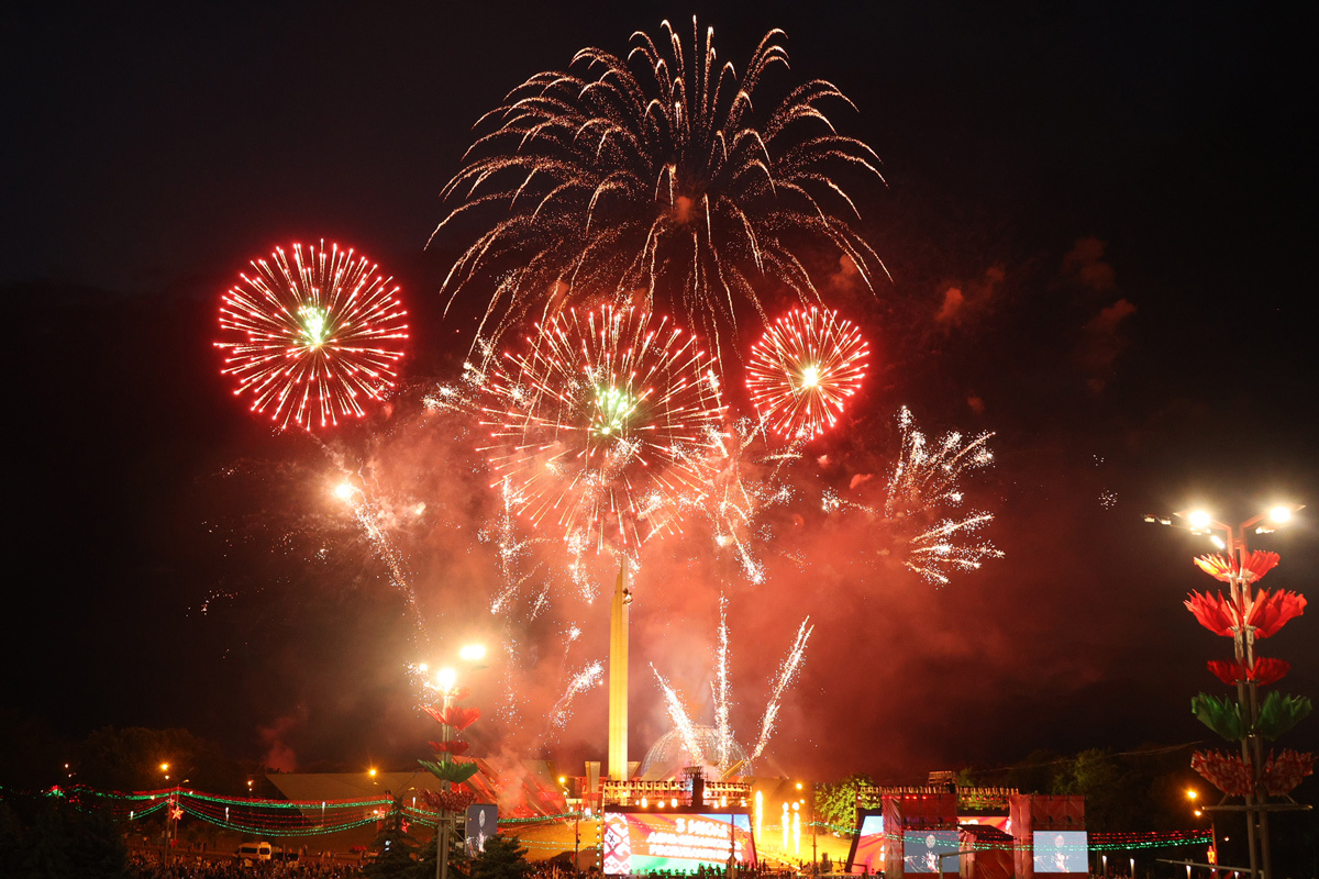 Яркий фейерверк стал завершающей частью праздника. В Минске вечером 3 июля прошел праздничный салют в честь Дня Независимости Республики Беларусь. Как это было, смотрите в нашем фоторепортаже. Уже по традиции фейерверк дали в шести точках столицы. Так что разноцветные вспышки можно было увидеть из любой точки города. Самый красочный салют был в парке Победы у стелы – места, символизирующего независимость нашей страны. Кроме того, полюбоваться на праздничные залпы можно было возле "Чижовка-Арены", в парках Павлова и им. Уго Чавеса, на набережной водохранилища Дрозды и возле Национальной библиотеки. А как минчане провели праздничный день, можно узнать в нашем репортаже. Неожиданный подарок в 30°С после затянувшихся холодов, видимо, оценили не все. Но праздник никто не отменял, выходной в действии, а люди хоть и лениво, но все-таки подтягивались к палаткам за шашлыком и пивом.