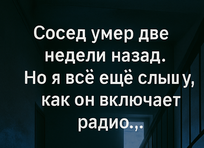 Когда ты живёшь один в панельной девятиэтажке, рано или поздно начинаешь замечать странности. Скрип в вентиляции, шаги этажом выше, хлопки дверей — всё кажется либо привычным, либо воображаемым. Но то, что началось в моей квартире, уже не объяснишь ни сквозняком, ни соседом с дрелью. В 315-й квартире рядом со мной жил старик по имени Яков Семёнович. Он почти не выходил. Иногда — в аптеку. Иногда — на лавку у подъезда. Но чаще всего я слышал, как он слушает радио. Одно и то же время: ровно в 20:00.