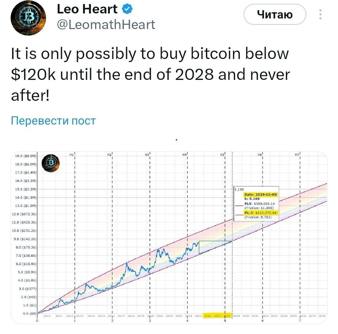 Математик Лео Харт считает, что купить биткоин по цене ниже $120 000 можно только до конца 2028 года и никогда после!