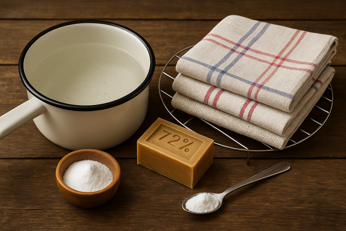 Когда-то кухонные полотенца у меня менялись как одноразовые. Любой жирный след — и считай, выкидывай. Отбеливатели, дорогие капсулы, «кипячение с эффектом активного пара» — ничего не помогало. Пятна оставались, ткань становилась жёсткой, а запах въедался так, что даже кондиционер не справлялся. Однажды на даче я невольно пожаловалась бабушке: