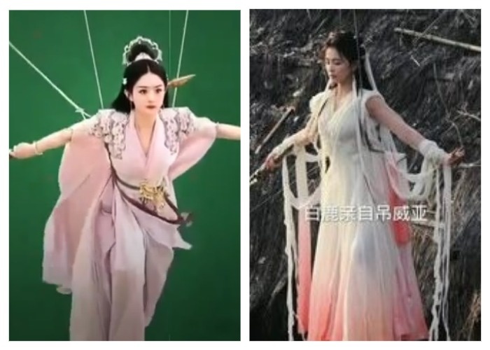 Съёмки в фэнтези-дорамах требуют от китайских актёров отличной физической подготовки и… хорошего вестибулярного аппарата. В этом можно убедиться, посмотрев видео ниже.