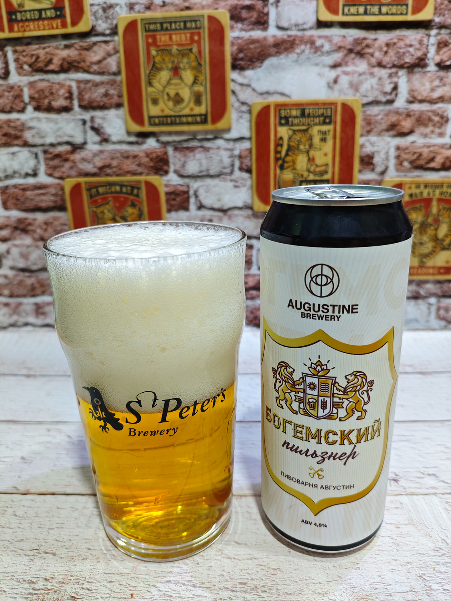 Пиво сварила Augustine Brewery (ООО "Августин") в городе Тула Тульской области. Описание читаем прямо на этикетке: Богемский пильзнер - это культовый сорт пива, который варился в Чехии из светлого солода, жатецкого хмеля на мягкой воде отварочным методом, сброженный особыми низовыми дрожжами и выдержанный в холоде и покое несколько месяцев. Это пиво покорило сердца целой планеты, вытеснив эли своей гениальной простотой и сбалансированным вкусом. Это пиво. ********************************************************************************** Плотность: 12%. Горечь: 40. Состав: вода, солод ячменный пивоваренный, хмель, пивные дрожжи. Срок годности: 180 суток при температуре от +2℃ до +10℃. 20 суток при температуре от +11 до +20℃. С даты розлива моей банки прошло примерно 2.5 месяца. На момент покупки пиво стояло в холодильнике. ********************************************************************************** Не смотря на то, что банка несколько дней хранилась в полном покое в холодильнике,
