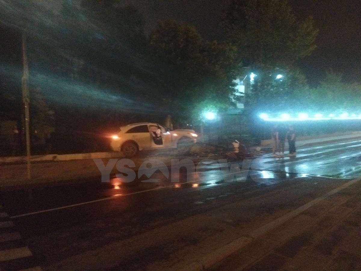 Автомобиль Infiniti ночью влетел в забор у площади Славы в Южно-Сахалинске