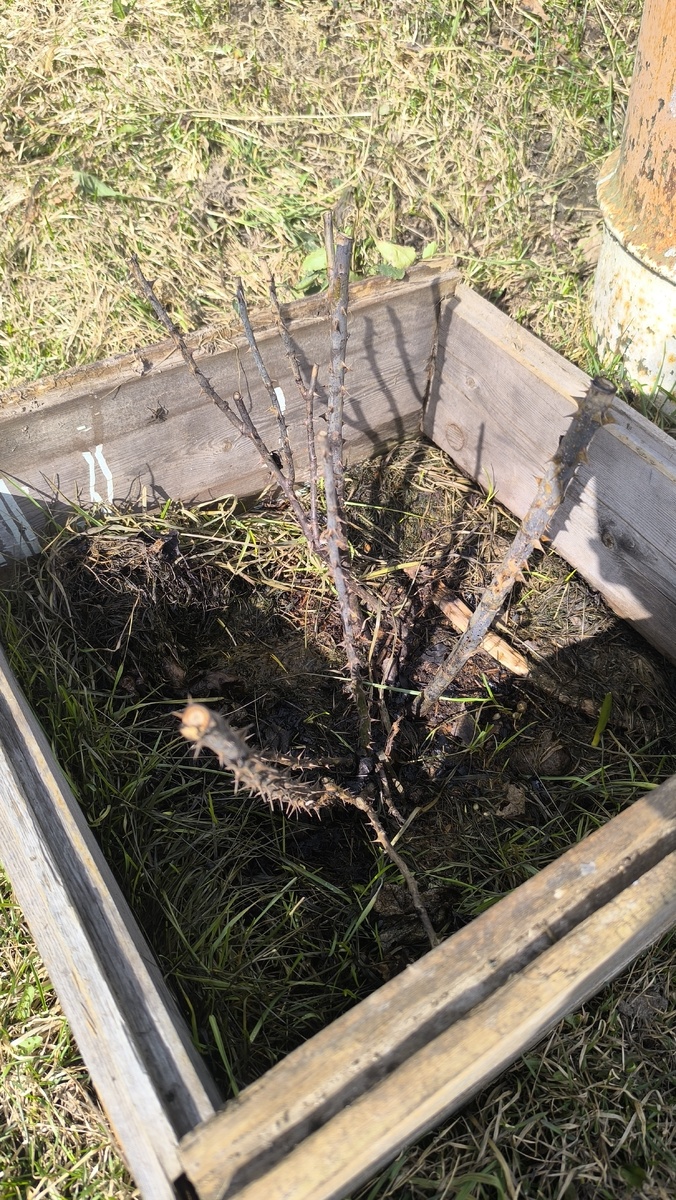 Ну да одиноко растущий маленький виноград очень было удобно накрывать этим толстостенные ящиком. А чем розы хуже? Подумала я и нахлобучила второй такой ящик на одиноко растущую Мокарозу.