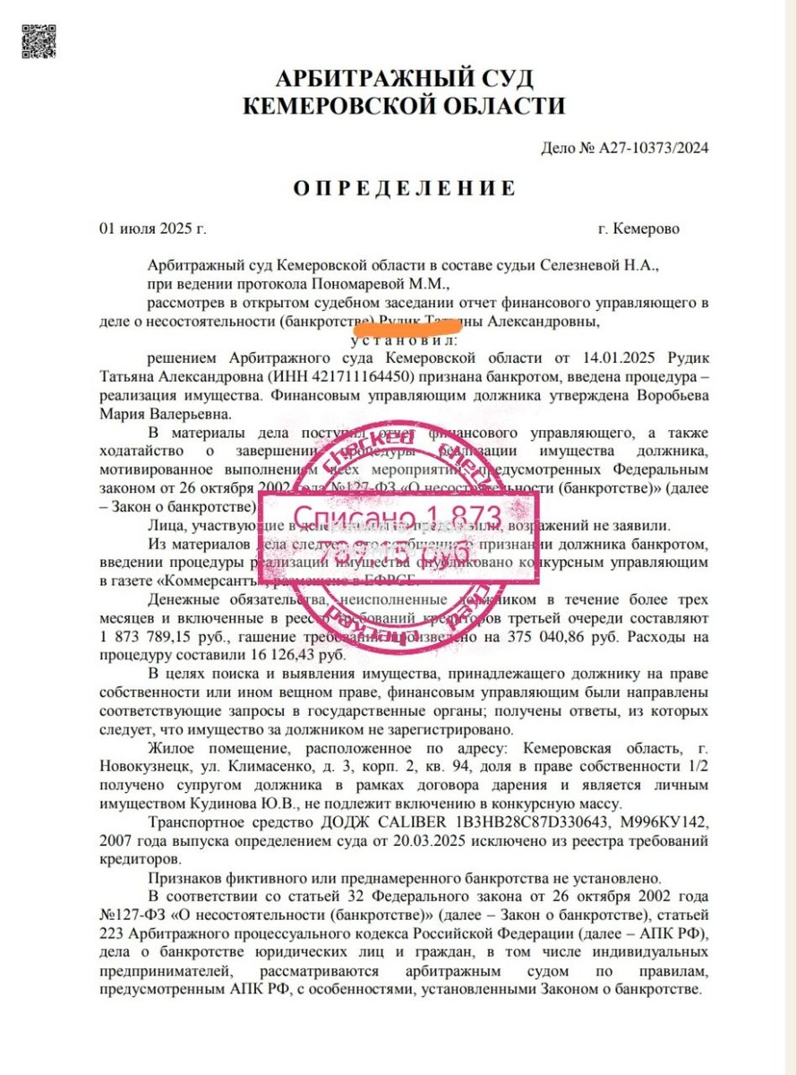 Поздравляю Татьяну Александровну со списанием всех долгов и кредитов! Сохрали автомобиль, вернули судебные расходы