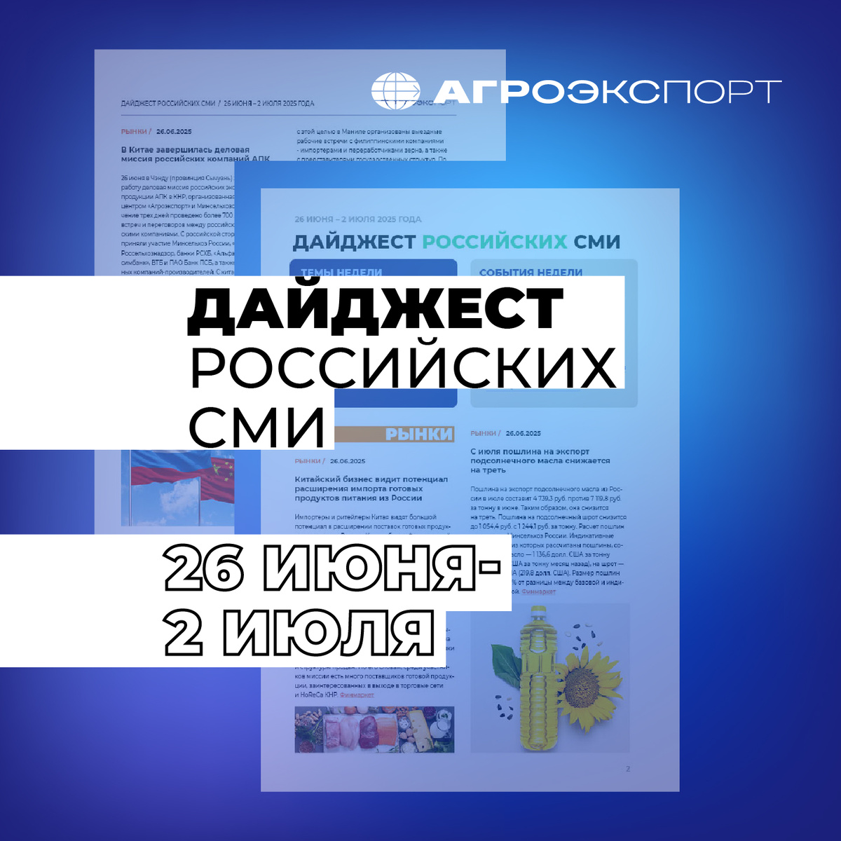 Дайджест российских СМИ от «Агроэкспорта» (26 июня — 2 июля 2025 года)