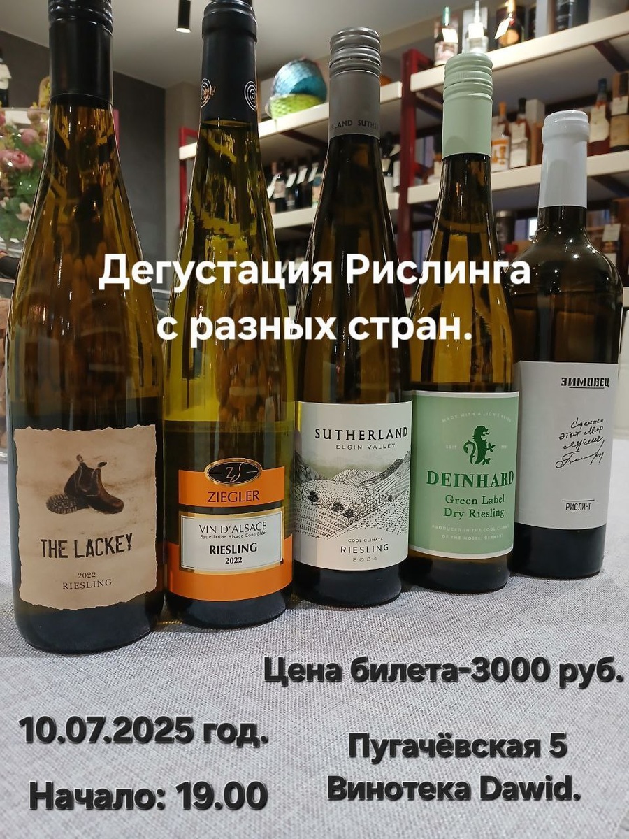 А вот это интересно) Кажется, из рислинга можно сделать любое вино — кроме красного. Он бывает абсолютно сухим и суперсладким. Бывает легким и цветочным, а иногда тельным и сочным, с акцентом на фрукты. Бывают даже оранжевые рислинги, игристые и безалкогольные. Еще больше различий вы найдете в винах из разных стран, рислинг — идеальный иммигрант: где бы он ни поселился, начинает говорить на местном языке без акцента. То есть проявляет особенности во вкусе и аромате, свойственные месту. Помогать в путешествии будет молодое дарование Николай Лысенко) Закуски и хорошее настроение включено! Добро пожаловать, Ваш Давид Писать: +7 987 656-54-63