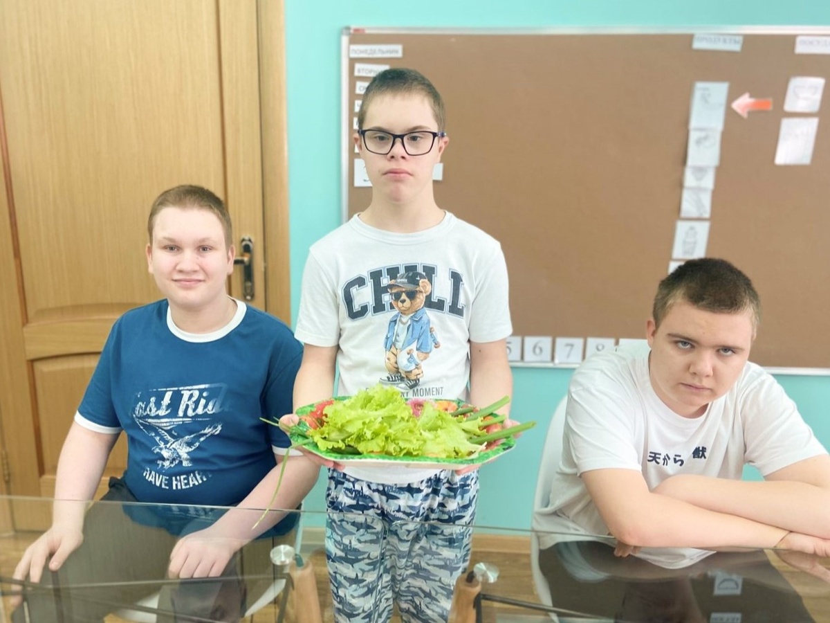 В рамках проекта «Чудеса на кухне» состоялся познавательный мастер-класс по приготовлению овощного салата. Главными поварами стали воспитанники центра, а ингредиенты для блюда они вырастили собственными руками — на мини-грядках под чутким руководством учителя домоводства Любови Коротченковой и воспитателя Ирины Дмитриевой. Ребята с самого начала наблюдали, как из крошечного семени появляются ростки, как зелень и огурцы набирают силу, превращаясь в зрелые плоды. И вот, наступил долгожданный момент — первый урожай собран, и настала пора превратить его в полезное блюдо! Перед началом работы ребята повторили гигиенические правила и меры безопасности, а также освежили в памяти, какие овощи нужны для салата. Надев фартуки и шапочки, дети подготовили столовый инвентарь — доски, ножи, миски — и приступили к делу. Каждый шаг — от нарезки овощей до добавления соли и масла — сопровождался активным участием и искренним интересом. Любовь Николаевна внимательно наблюдала за процессом, помогала и под