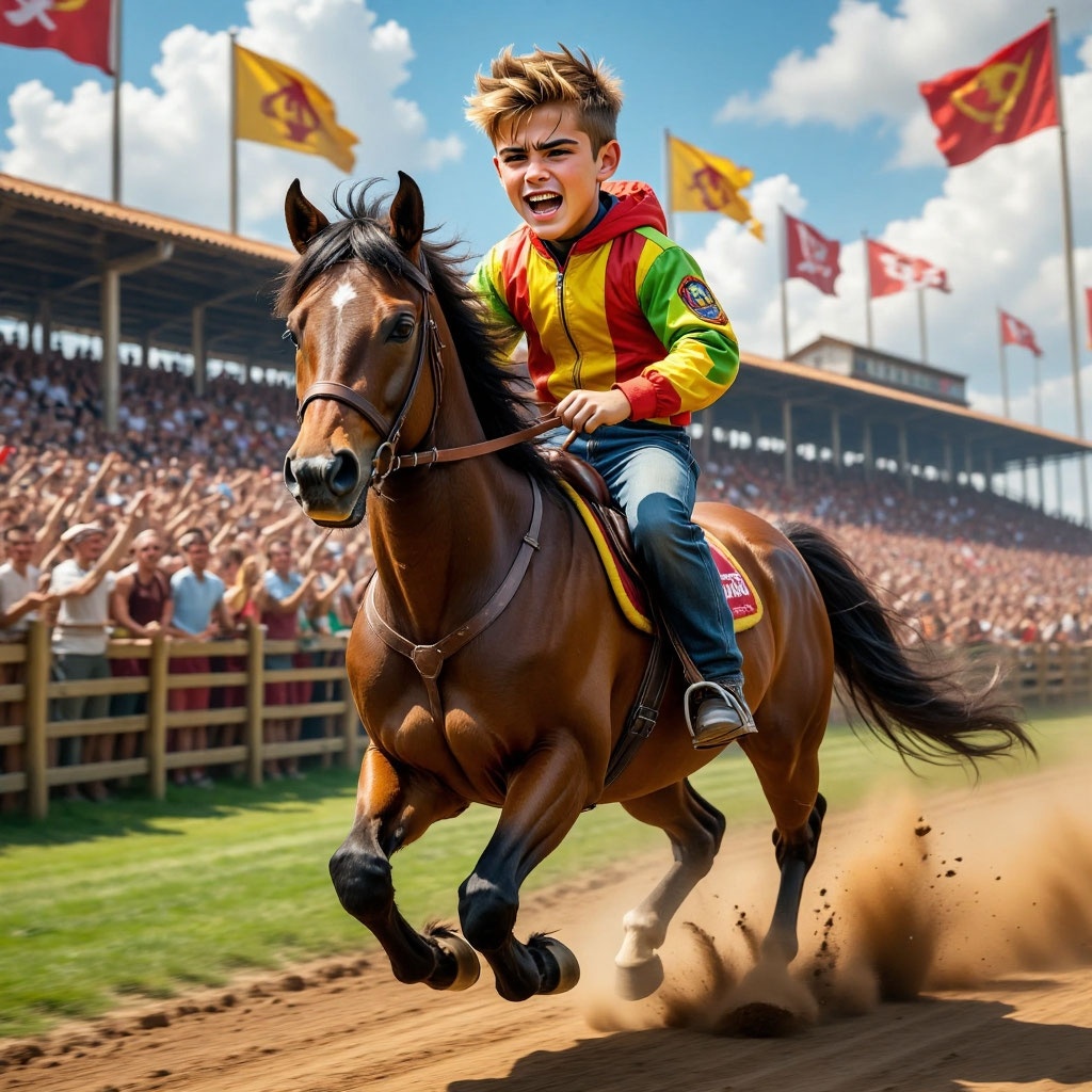 Старт! Ветерок рванулся вперёд, словно стрела. Пётр чувствовал каждое движение своего коня, словно они стали единым целым. На финишной прямой соперники пытались догнать их, но было поздно — Ветерок уже летел к победе.