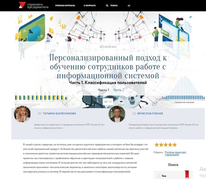В журнале "Управление предприятием" опубликована 1 часть статьи НЭП о персонализированном подходе к обучению сотрудников работе с информационной системой.