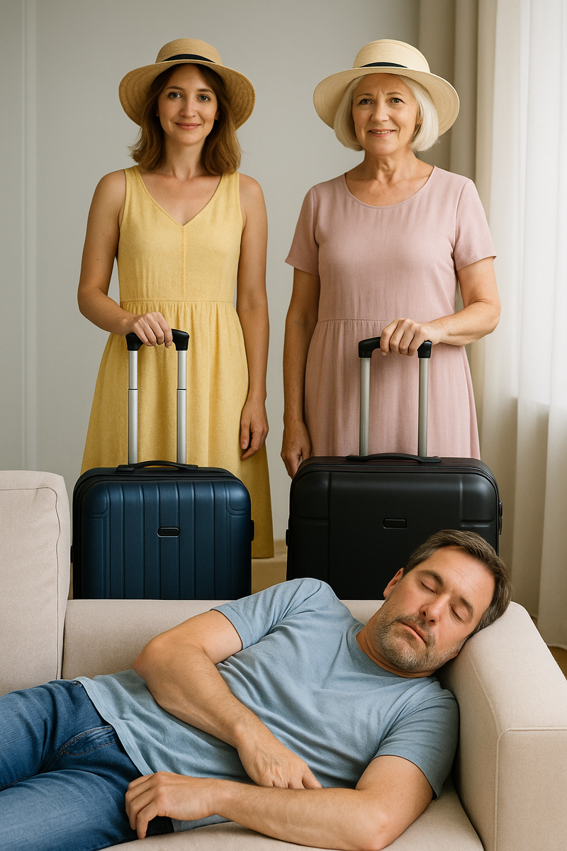 Не встал он и когда мать с женой выбирали куда полетят, когда наряды мерили, и когда...улетели.