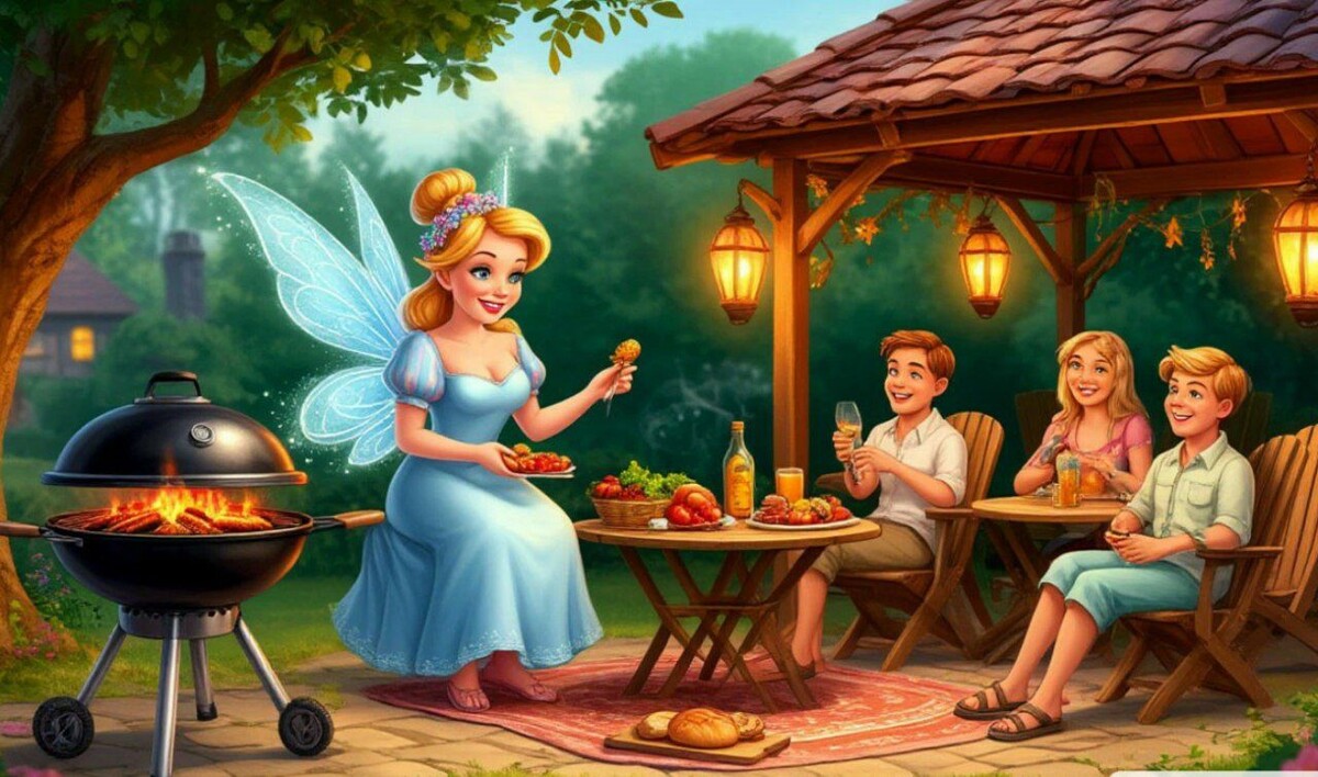 С помощью волшебной палочки она создает идеальные условия: уютные беседки, светящиеся фонарики и даже музыкальный фон. Вместо туфель гости носят удобные сандалии, а их рабочая одежда преображается в легкие летние наряды, идеально подходящие для пикника.