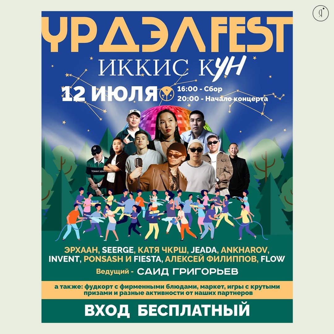 Урдэл Фест - День Второй #Концерты На сцене: 🤩 Лэйбл Уйэлээх: Эрхаан, Seerge, Катя ЧКРШ - хедлайнеры вечера! 🤩 Легендарные Jeada, Ankharov, Invent, Ponsash & Fiesta, Алексей Филиппов и Flow! 🎤 Ведущий: Неотразимый Саид Григорьев! А ещё: - танцевальный баттл! - фуд-корт - яркий маркет с уникальными товарами - игры и призы - водные игры в духе «Сонгкран» 12 июля | 20:00 Вход свободный Online Якутия | Подписаться