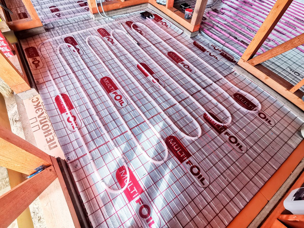 Минусы: сложный монтаж, нужен котёл или доступ к центральному отоплению. Греющий кабель под полом.