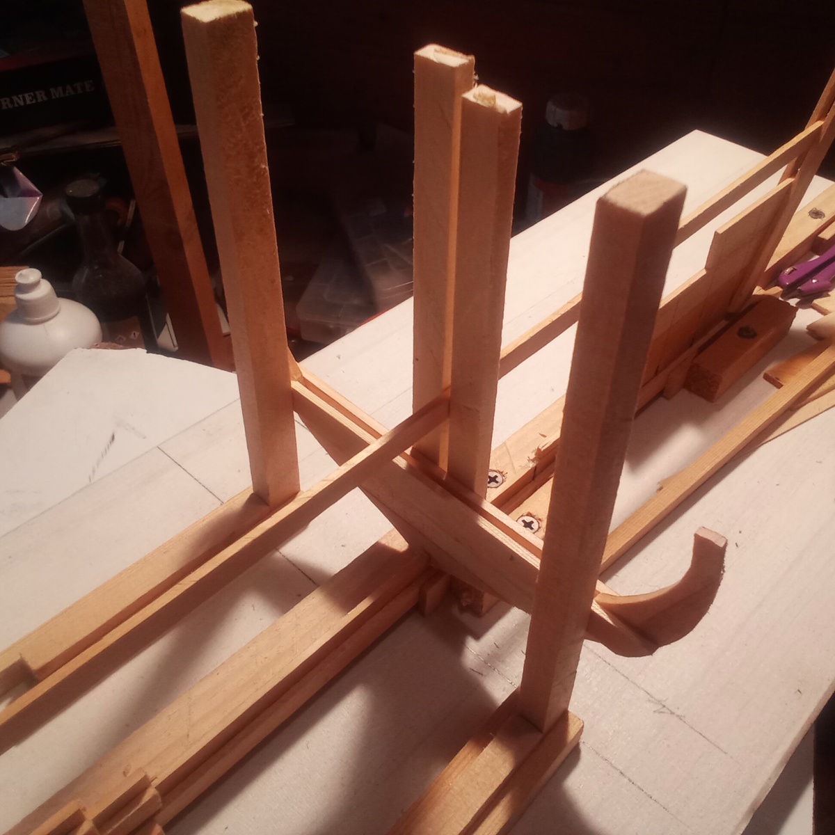 Устанавливать мы сегодня будем Мидель .Вот он уже готов и ждёт своего часа. Обратите внимание на две вертикальные реечки. Это не только Рёбра жесткости, но и Направляющие.