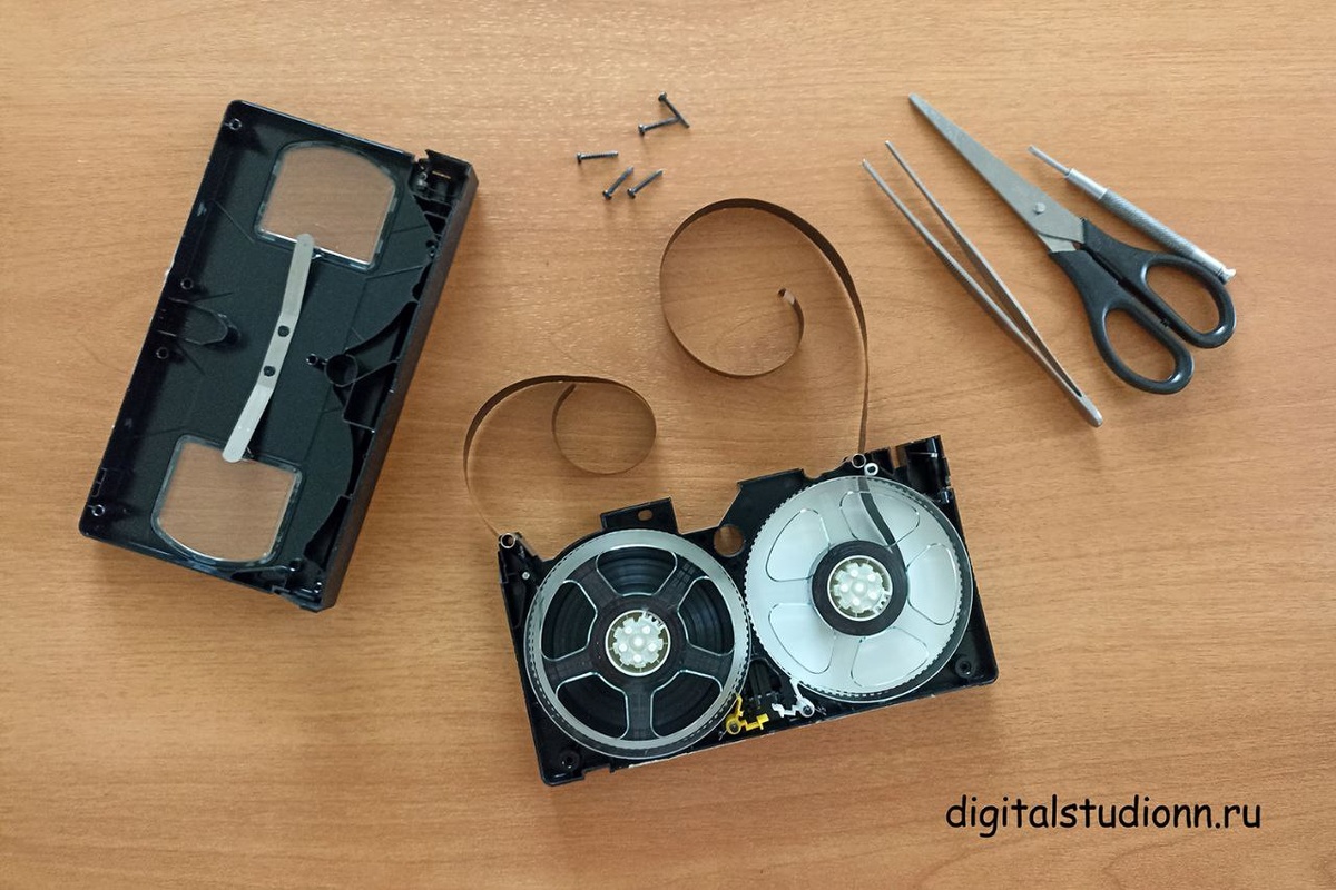 Из последнего. Ремонт кассеты, приведение в рабочее состояние перед оцифровкой. На фото: VHS, 1990-е годы Ещё об этом: https://digitalstudionn.ru/remont-video-audiokasset