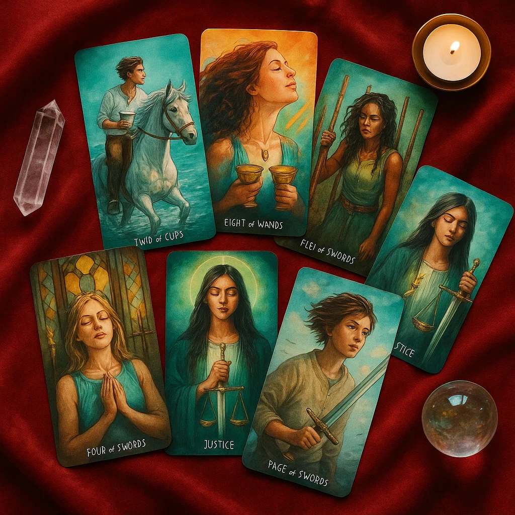 Вы сейчас — в точке силы и трансформации. Карты описывают женщину, которая либо уже освободилась от сильной зависимости (будь то эмоциональная, материальная или энергетическая), либо стоит на грани этого освобождения. Кто-то из вас мог разорвать отношения, где вами управляли — через чувство вины, обязательства, детей, деньги. А кто-то только начал этот путь. Но вы уже взрослее, сильнее и мудрее, чем были тогда.