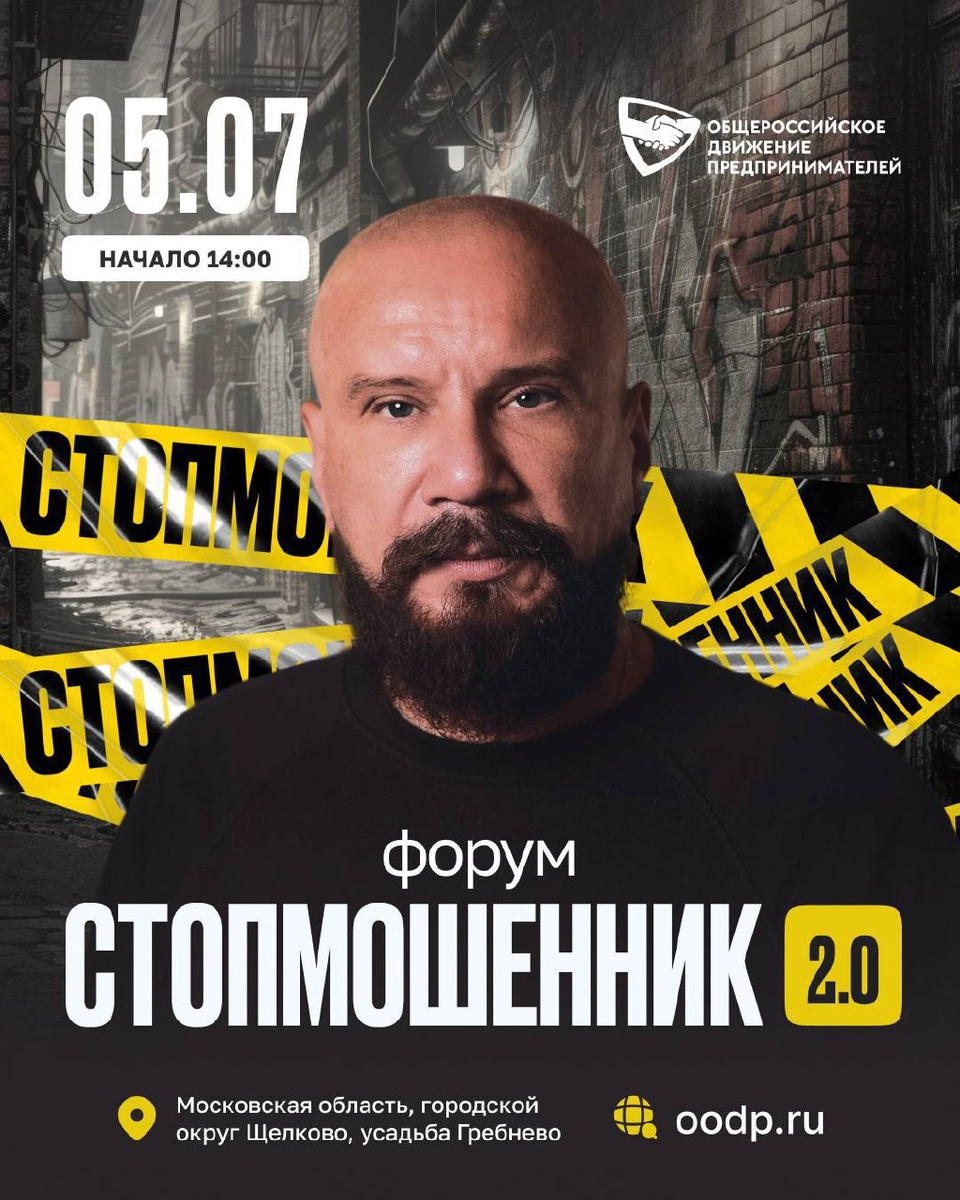 Уже завтра 5 июля встречаемся на форуме "СтопМошенник 2.0", который пройдет в усадьбе Гребнево! Начало: 14:00 Вход свободный и бесплатный В мероприятии примут участие эксперты в области противодействия мошенничеству, депутаты, общественные деятели, юристы, блогеры, граждане, пострадавшие от действий аферистов! На форуме мы обсудим актуальные вопросы, связанные с выявлением и пресечением мошеннических схем, а также практические рекомендации по повышению финансовой грамотности и совершенствованию механизмов защиты. Все предложения, выработанные на форуме, будут рассмотрены и учтены в законотворческой деятельности. Форум открыт для широкой аудитории, в том числе для семей с детьми. Мы уделим особое внимание информированию молодого поколения о методах защиты от мошенничества! К освещению приглашаются представители медиа. Аккредитация СМИ: Irina@oodp.ru 📍Адрес: Московская область, городской округ Щёлково, усадьба Гребнево 🔗 Сайт: oodp.ru ✅ АНДРЕЙ КОВАЛЕВ | reformator.ru | oodp.ru