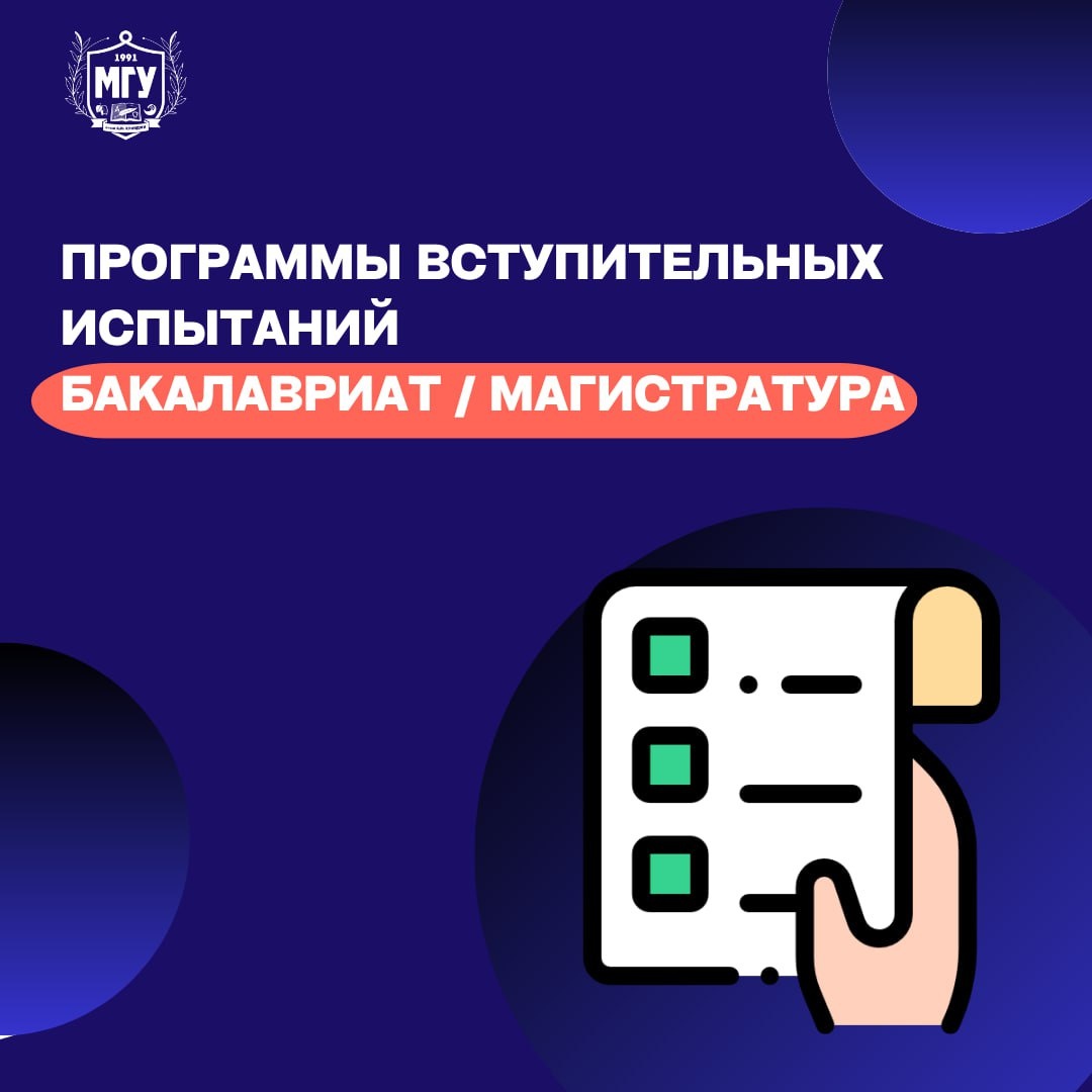 🤩 Программы вступительных испытаний — 2025! Собрали полный список программ вступительных испытаний в МГУ имени А.И. Куинджи для бакалавриата и магистратуры на 2025 год ⬇️ ⏩Бакалавриат Биология География Английский язык Немецкий язык Французский язык Информатика Литература (письменное) Литература (собеседование) Математика Русский язык (собеседование) Русский язык Русский язык для иностранных граждан — собеседование Физика История История (собеседование) Обществознание ⏩Магистратура Системный анализ и управление Практическая психология Финансы и кредит, Учет и Аудит, Экономическая безопасность Экономика (профиль: Экономика предприятия, Управление персоналом и экономика труда, МЭО и МБ) Менеджмент Государственное и муниципальное управление Социальная работа Юриспруденция Политология (профиль: Теория политики, политический анализ и прогнозирование) Реклама и связи с общественностью Журналистика Туризм Педагогическое образование (профиль: Менеджмент в образовании) Педагогическое образо