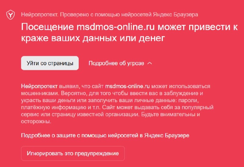 ❗️Одно из актуальных направлений фишинга – оплата проезда по платным дорогам Москвы, включая Московский скоростной диаметр (МСД). Злоумышленники создают сайты, визуально практически неотличимые от официальных ресурсов и индексирующиеся в поисковых системах. После ввода реквизитов банковской карты и суммы платежа средства будут списаны, а проезд по-прежнему не оплачен. Полученные данные карт мошенники затем активно используют в своих целях. ⛔️За минувший месяц заблокировано более 10 ресурсов схожих с официальным сайтом (например, msd-avtodor-tr, msdmoss), максимальный ущерб, нанесенный гражданину превысил 22 тыс. рублей. ❗️Не игнорируйте предупреждения браузера и пользуйтесь только официальными ресурсами. Сделать это можно в приложении «Парковки России», на сайте msd.mos.ru, на Госуслугах, а также в приложениях банков, где указаны ваши данные об автомобиле. 🫡Подписаться на Киберполицию России 📲 Вконтакте I 📲 Одноклассники 🇷🇺 Чат-бот Киберполиции России 🫡 Поддержать канал