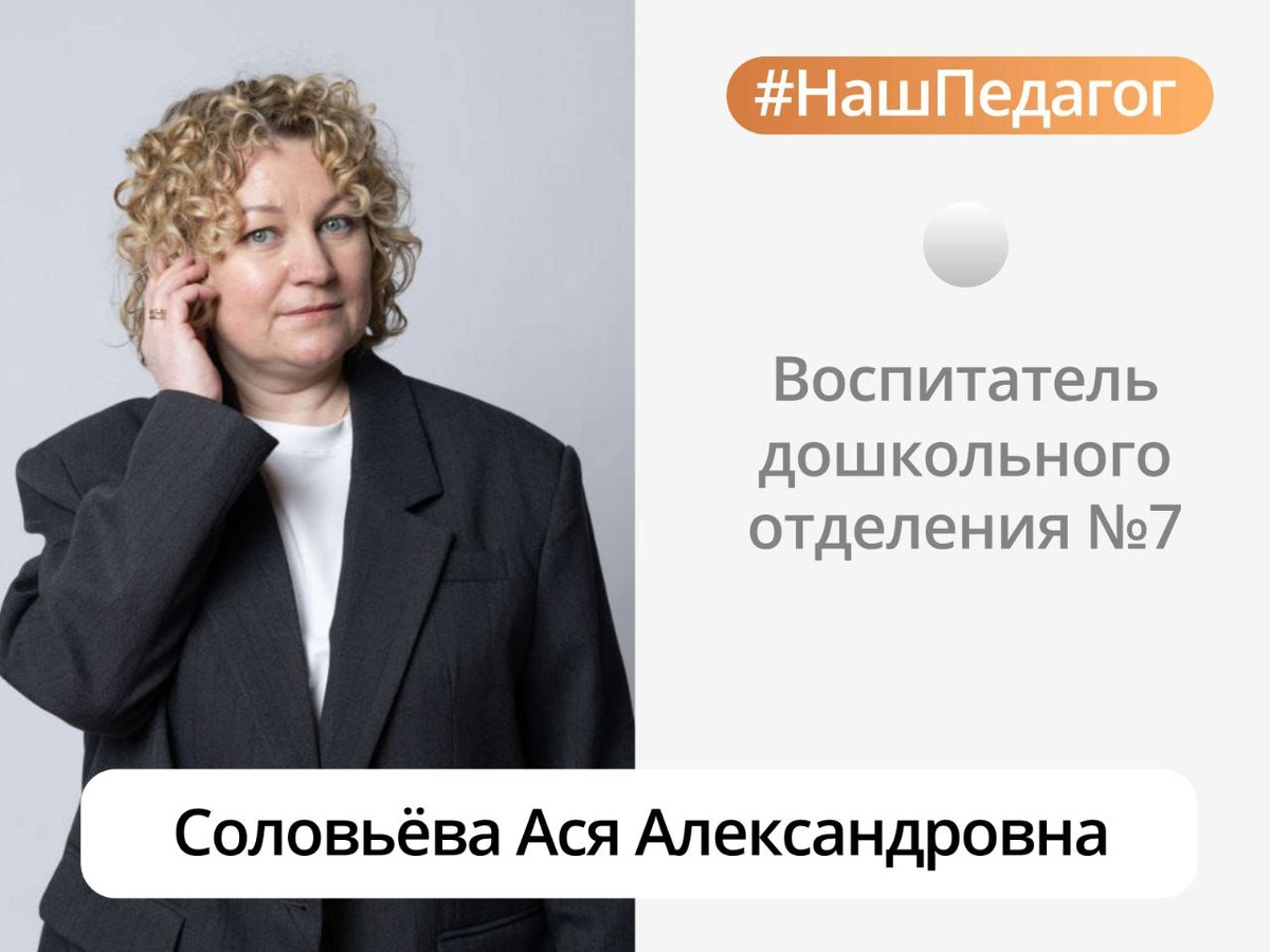 Наш воспитатель Соловьева Ася Александровна уже четверть века помогает расти и развиваться своим маленьким воспитанникам, радуется каждому успеху, поддерживает в трудные моменты и всегда верит в их силы. За это время через её заботливые руки прошли сотни ребят, и каждый из них унес с собой частичку её тепла и мудрости.
