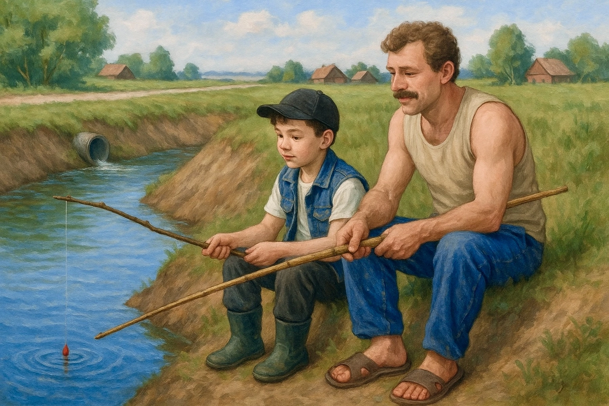 Четвертое озеро — место, где мы с папой не только ловили рыбу, но и учились справляться с неожиданностями. Именно там я впервые узнал, что рыбалка может быть не только спокойной... В детстве мы называли его просто Четвертое. Это озеро находится недалеко от совхоза «Родина» в Башкортостане. Мне было около семи лет, когда я вместе с папой приехал туда на машине. Это было наше особенное место: немного укромное и всегда полное сюрпризов. Четвертое озеро соединяется со Вторым небольшим ручейком, который течет через трубу под грунтовой дорогой. В этом озере, как и во Втором, водится карась, но здесь есть и своя особенность — вьюн. Эта рыба похожа на небольшого сомика: у нее отсутствует чешуя, есть усы, и, в отличие от настоящего сома, вьюн не вырастает большим. По крайней мере, на других озерах я его ни разу не ловил. Именно это и делало Четвертое таким интересным: здесь всегда был шанс поймать что-то необычное. Озеро по форме напоминает полумесяц. Левый берег высокий, около трех метров,
