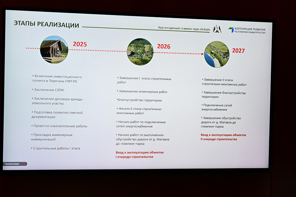 Глава Башкортостана Радий Хабиров провел очередное заседание Инвестиционного комитета региона в формате «Инвестчас», на котором рассмотрели новые инициативы в промышленности, туризме и сфере услуг, сообщает его пресс-служба. Гендиректор компании «Янбай» Ольга Кузнецова представила проект создания в Дуванском районе круглогодичного глэмпинг-парка близ урочища Янбай. Там разместятся гостевые дома различной вместимости, ресторан, банный комплекс и спортивно-туристическая база. Проект уже одобрили на муниципальном «Предпринимательском часе», а Корпорация развития Башкортостана оказала содействие в подготовке необходимой документации. Инвестор на сегодня проработал вопросы, связанные с выделением земельного участка и подведением инженерных сетей. В проект планируется вложить 202 млн рублей. С запуском глэмпинг-парка появится 14 рабочих мест. В перспективе также рассматривают возможность запуска эко-фермы и оборудованной вертолетной площадки. Инвесткомитет республики поддержал проект и присв
