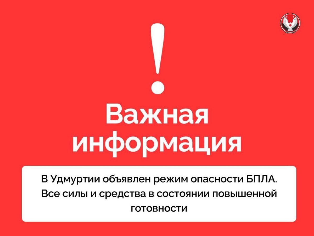 ❗️Угроза атаки беспилотников объявлена в нескольких городах Удмуртии