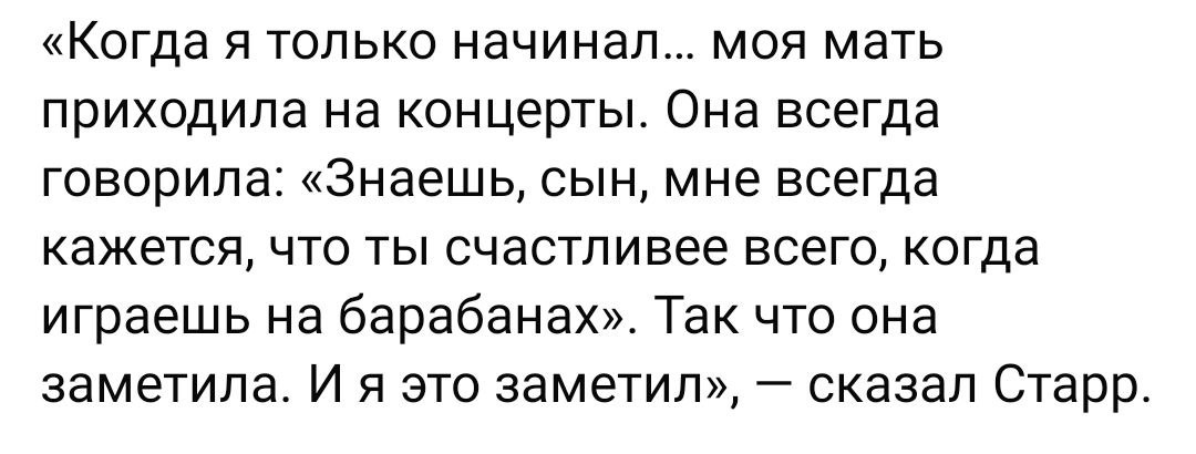 Круто когда твоя мать ходит на твои выступления, знает чем ты занимаешься и знает что делает тебя счастливым... Кстати, Ринго Старру из Битлз через три дня стукнет 85