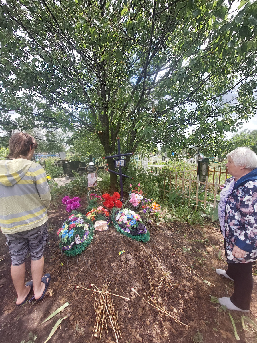 Сьездили на кладбище к дедушке, который умер в мае этого года. Муж успел в мае сьездить с ним попрощаться, с живым...