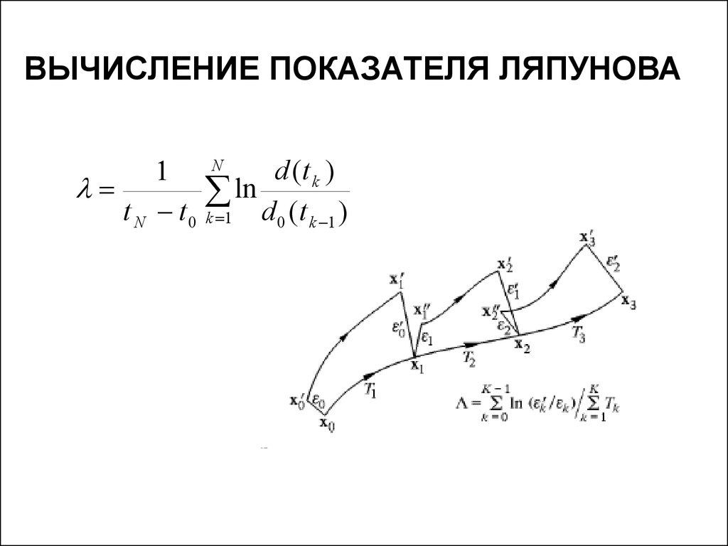 λ — показатель Ляпунова (характеризует скорость расхождения траекторий),