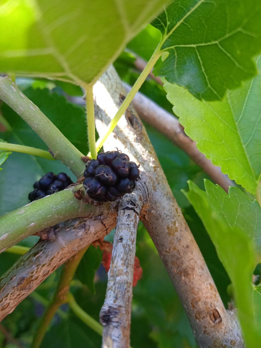 Вчера впервые попробовала ягоды со своей штамбовой шелковицы.Ягодки сладкие, даже приторные, никакой кислинки.Вкус для меня необычный.Вот только не пойму почему у меня ягодки мелкие.Вроде и дожди были, а ягоды не выросли крупными.