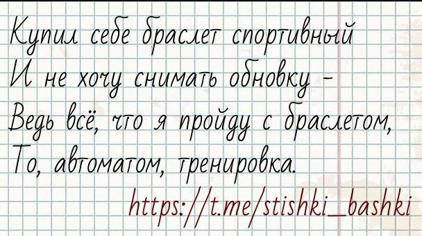 Про спорт #спортэтожизнь #стишкиизбашки Стишок каждый день для настроения @stishki_bashki 📹 - видеостишки тут 👈 🙊 - а тут можно комментировать 👈 Поделитесь стишком с друзьями