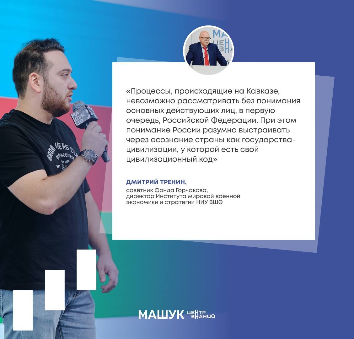 📍 «Машук» — центр обсуждения и формирования будущего сотрудничества на Кавказе и в Евразийском пространстве В Центре знаний «Машук» проходит ежегодная инициатива Фонда поддержки публичной дипломатии имени А. М. Горчакова — программа «Кавказский диалог». Это уникальная площадка для молодых специалистов из России и зарубежья, где обсуждаются актуальные вопросы международных отношений, экономики и культуры региона Южного Кавказа. Эксперты и приглашённые специалисты поделились своими взглядами на развитие региона, культурное взаимодействие и международные процессы. 👉Их высказывания отражены в серии карточек, которые помогут лучше понять современные тенденции на Кавказе и в Евразийском пространстве.