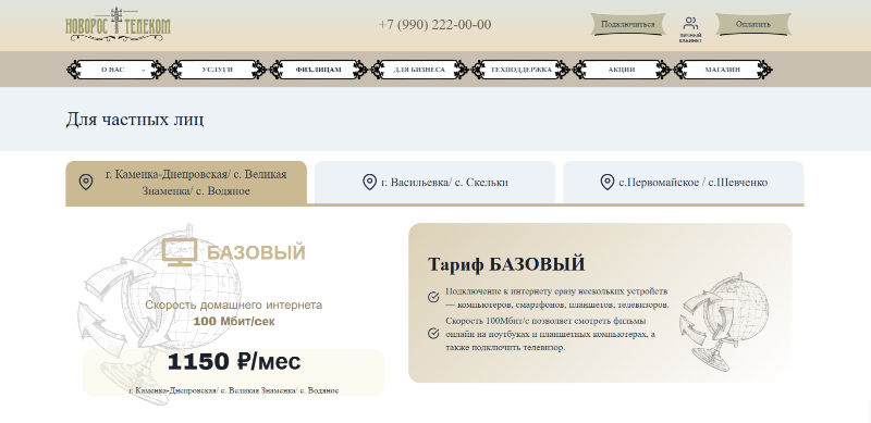 Минимальный пакет услуг стоит 1150 рублей в месяц. Актуальные новости Запорожской области от 4 июля. В чат-бот «Блокнот Запорожье» поступило сразу несколько обращений от жителей Каменки-Днепровской. К слову, так много сообщений о какой-либо проблеме мы ещё не получали. Запорожцы рассказали о космических тарифах на интернет. Как оказалось, минимальный пакет без телевидения и с самой низкой скоростью в 100 мегабит в секунду обходится аж в 1150 рублей в месяц. По словам местных жителей, провайдер «Новорос-телеком» постоянно необоснованно повышает цены. Скорость интернета отвратительная, а платить нужно всё больше и больше. Иногда его и вовсе нет часами. В худшем случае – днями. Запорожцы рассказали, что ранее минимальный пакет стоил 820 рублей в месяц, что, в целом, тоже дорого. Ещё раньше – 620 рублей в месяц. Теперь же новый тарифный план предусматривает цену в 1250 рублей в месяц. То есть, она взлетела в два раза. При этом объяснить причины повышения стоимости «Новорос-телеком» якобы н
