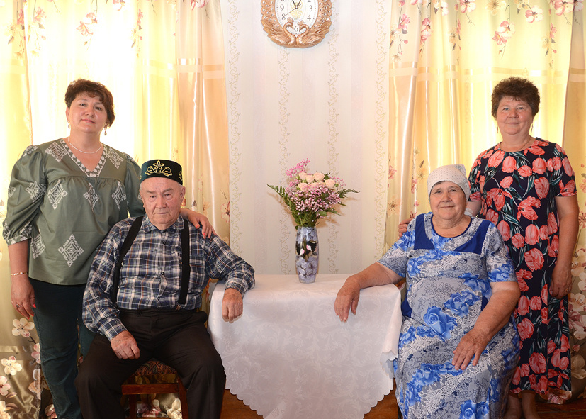 С честью встречает юбилей в кругу семьи Живет в селе Языково дружная супружеская пара Баязитовых, и даже спустя 57 лет со дня свадьбы нескрываемая нежность сквозит в их глазах при взгляде друг на друга. Они оба отмечают в этом году юбилеи: Асия Кашбиевна — 75-летие, а 80-летие Талгата Галиевича приходится на эту цветущую, ароматную июльскую пору. Их усадьба утопает в различных зеленых насаждениях, а приятное времяпровождение на резных качелях под раскидистой яблоней, плоды которой так и просятся в руки — это высшее наслаждение и награда за праведные труды и достойно прожитую жизнь! Их судьбы чем-то схожи: оба родом из кучербаевских краев, остались рано без матерей, выросли в простых трудолюбивых семьях. Они добились успехов на профессиональном поприще, Асия Кашбиевна стала передовым птицеводом-оператором, ее фото много лет украшало Доску почета птицефабрики «Благоварская». А вот Талгат Галиевич — отличный водитель с многолетним стажем, более 20 лет проработал на «Скорой». Сколько больн
