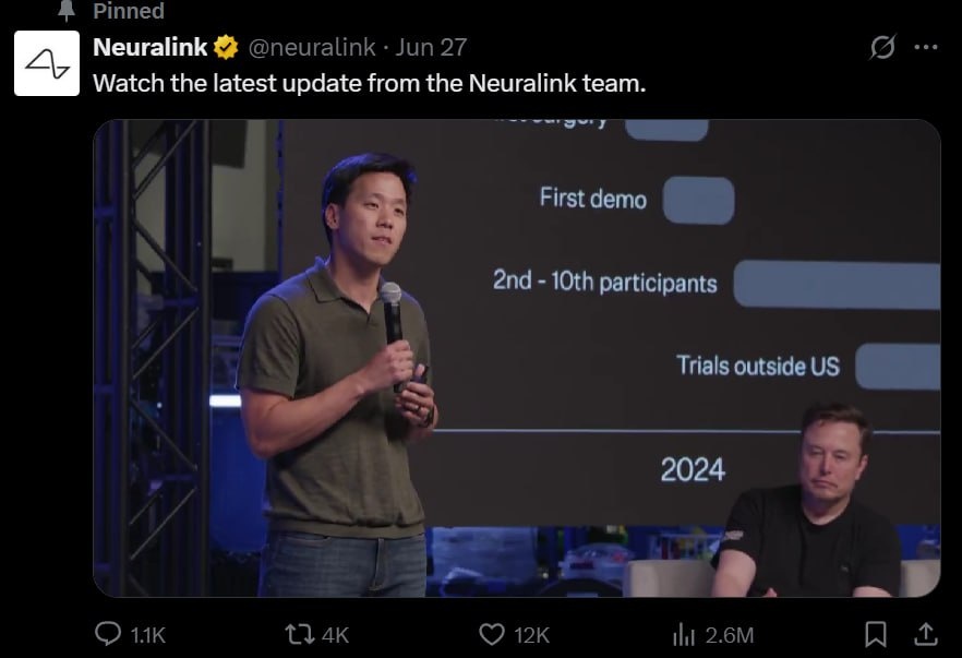 Илон Маск рассказал о новых результатах клинических испытаний: семь пациентов с тяжелыми нарушениями подвижности получили нейроимпланты Neuralink.