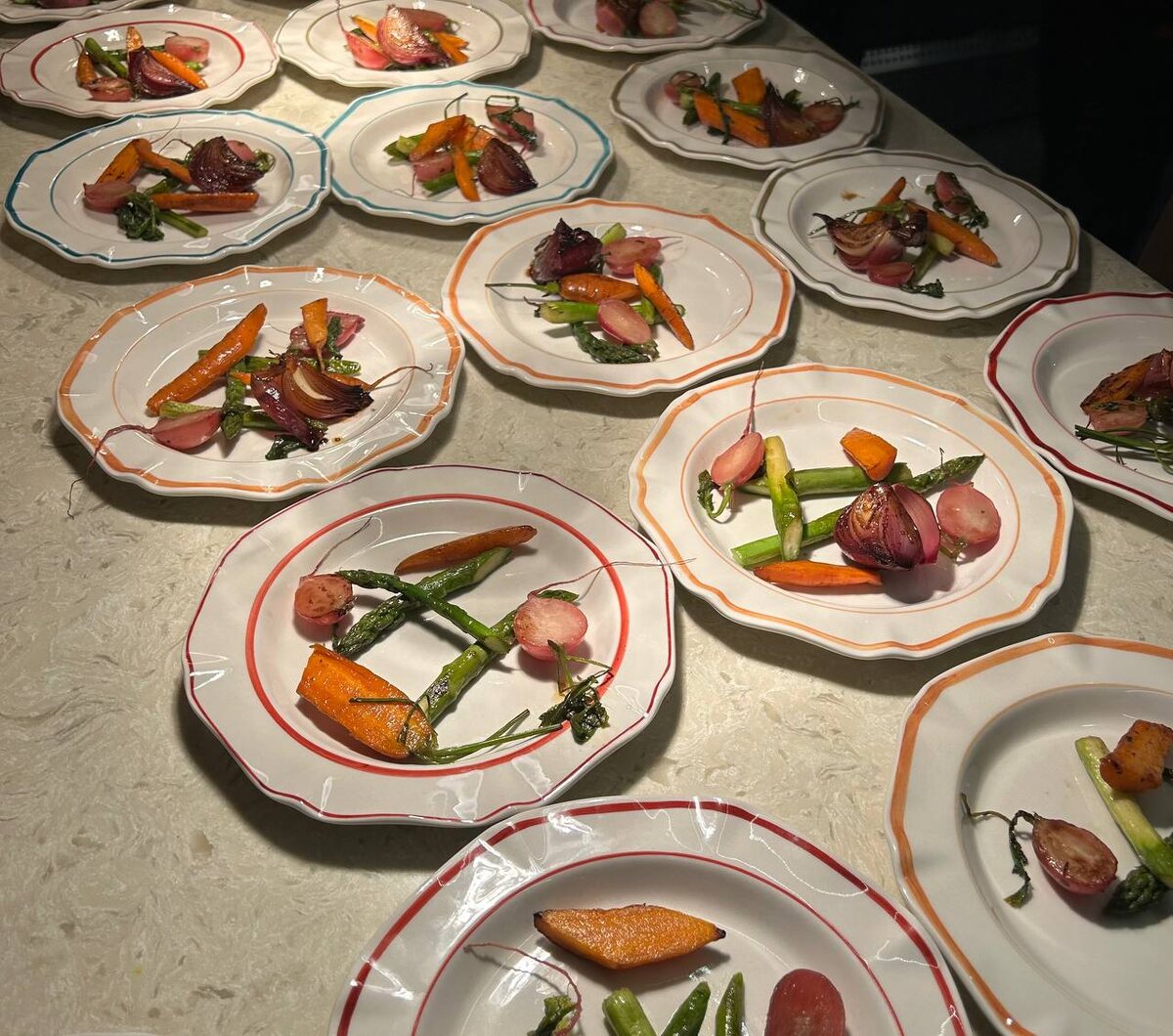 Все очень просто: овощи щедро, не скупясь, макаете в жир (или мажете им кисточкой, а лучше веточкой розмарина) и кидаете на гриль. Жарите до корочки (но чтобы овощи сохраняли хруст), посыпаете крупной солью и подаете.