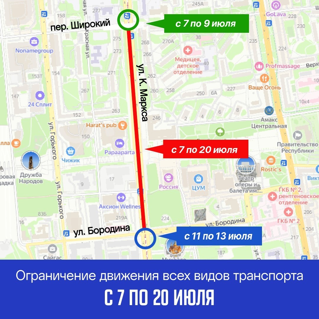 ⛔️Улицу К. Маркса в Ижевске закроют для транспорта до 20 июля Движение на улице перекроют из-за ремонта пешеходной эстакады, сообщает пресс-служба Администрации Ижевска. Движение по улице на участке от пер. Широкий до ул. Бородина для всех видов транспорта закроют с 7 по 20 июля. На время ремонта для транспорта также будут закрыты перекрестки: 🚧с 7 по 9 июля - пер. Широкий и ул. К. Маркса; 🚧с 11 по 13 июля - ул. Бородина и ул. К. Маркса. Фото: пресс-служба Администрации Ижевска Подписывайся на Ижевский бизON #Ижевск