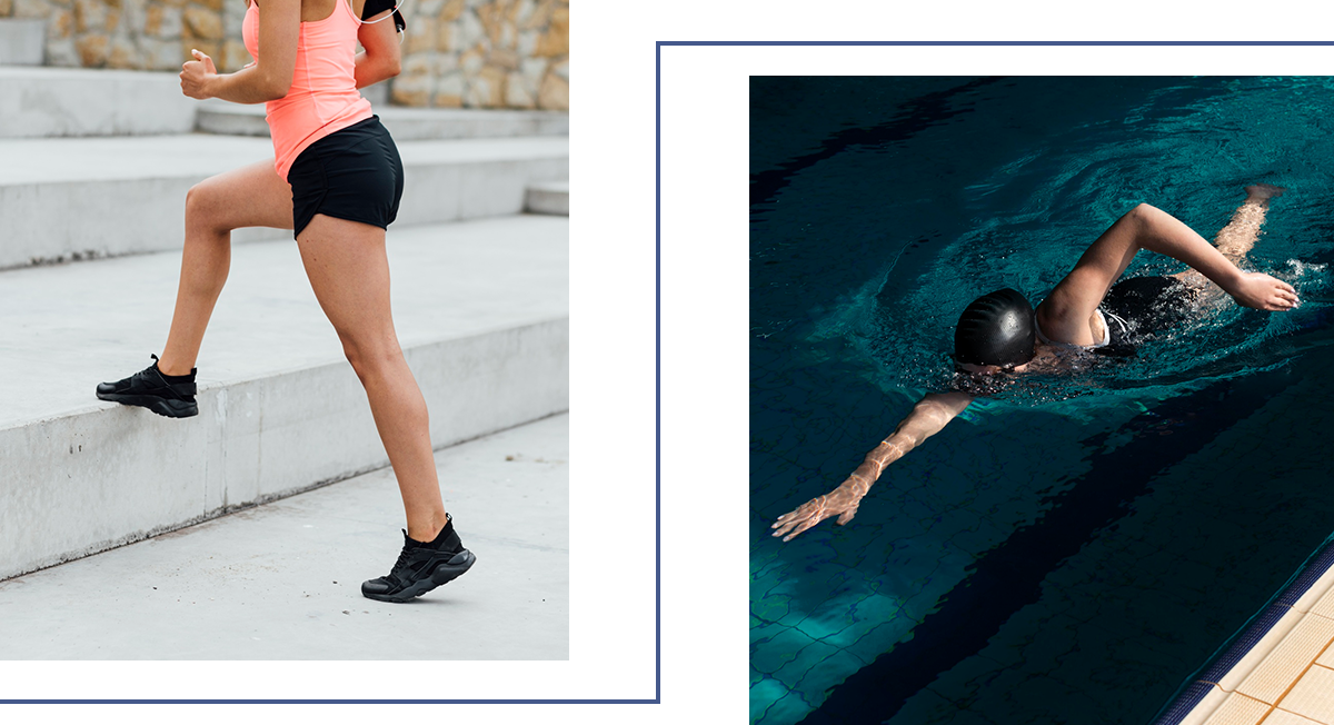 Начинай с умеренных по интенсивности тренировок, например энергичной ходьбы по ровной местности или плавания, чтобы постепенно укрепить общефизиологические резервы организма.